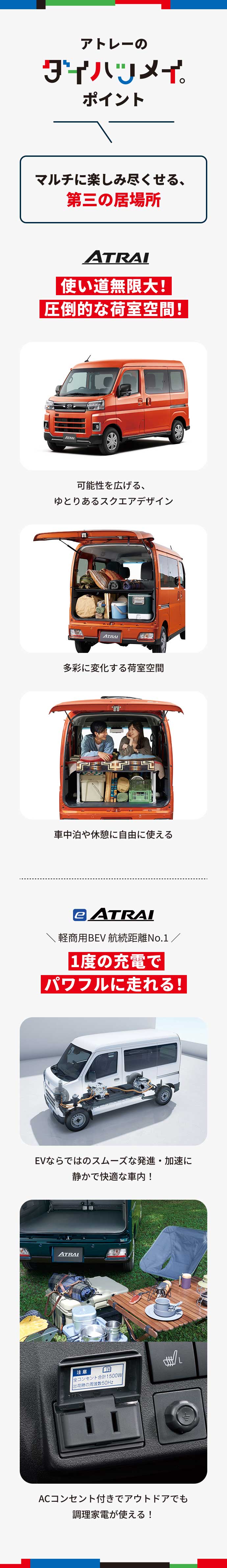 ■スマートアシストに頼った運転は絶対に行わないでください。スマートアシストは、ドライバーの判断を補助し、事故被害や運転負荷の軽減を目的としています。脇見運転やぼんやり運転などドライバーの前方不注意を防止したり、悪天候時の視界不良下での運転を支援する装置ではありません。また、あらゆる状況での衝突を回避するものではありません。運転時は常に先行車や歩行者との距離や周囲の状況、運転環境に注意して必要に応じてブレーキペダルを踏むなど距離を保ち、安全運転を心がけてください。■スマートアシストの認識性能・制御性能には限界があります。ドライバーの運転操作、急カーブ、急勾配、雨等の道路状況、および天候によっては、システムが作動しない、または作動が遅れる場合があります。■雪、濃霧、砂嵐の場合や、トンネル内、夜間、日射しの状況によってはステレオカメラ、ソナーセンサーが障害物などを正常に認識できず、適切に作動しない場合があります。■作動条件下であっても、システムが作動しない場合があります。■このほか、スマートアシストについて重要な注意事項が記載されておりますので、詳しくは取扱説明書をご覧ください。■スマートアシストの詳細は販売会社にお問い合わせください。■車種やグレードにより、装備内容や作動条件が異なる場合があります。